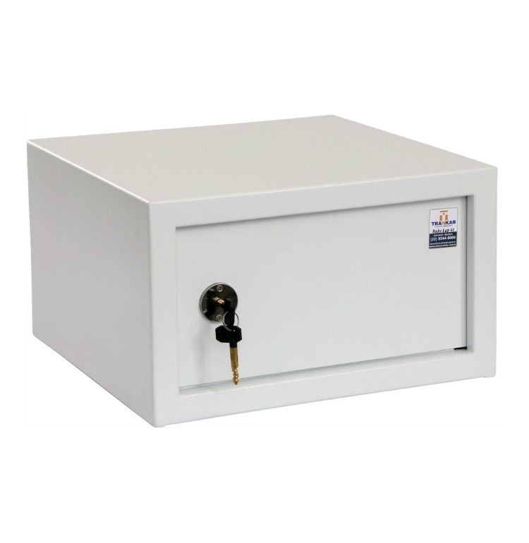 Cofre mecânico com sistema de abertura por meio de fechadura com chave tetra, proporcionando simplicidade e segurança aos bens de valor contidos em seu interior.